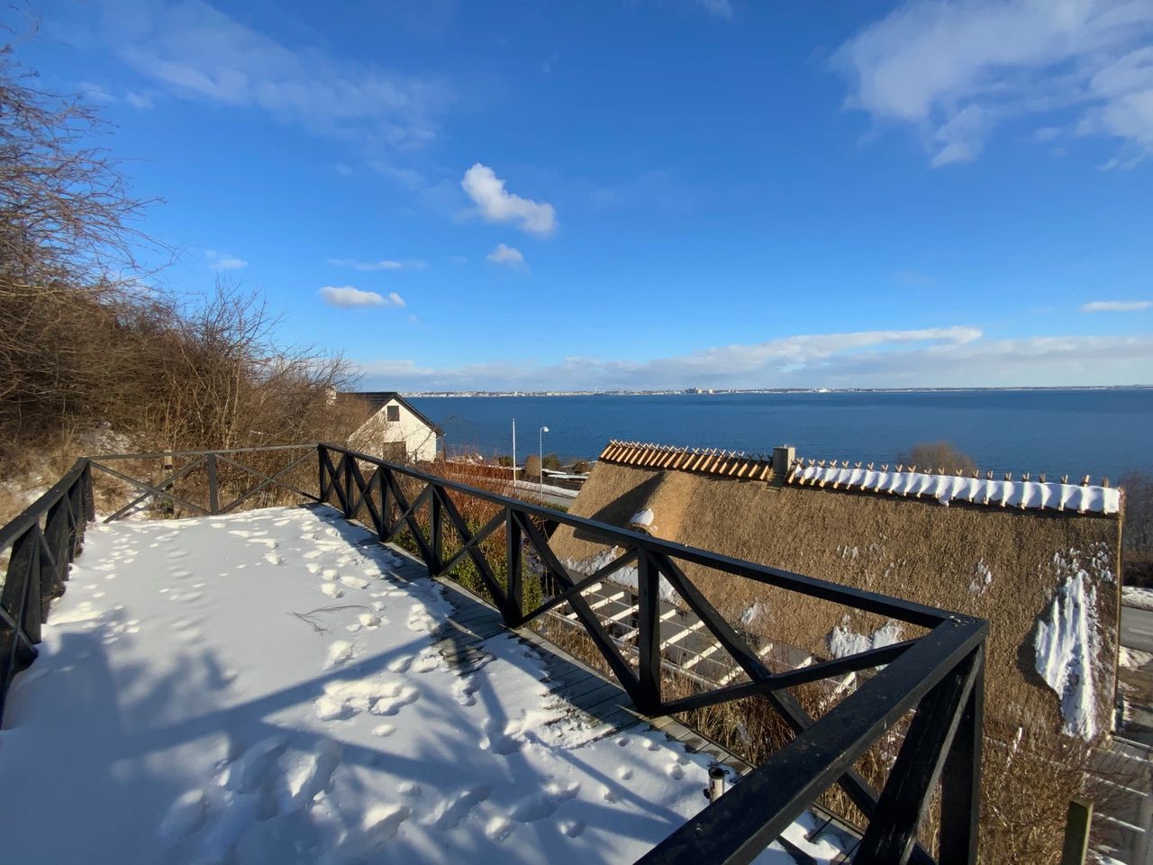 Charmerende stråtækt ejendom med udsigt over Øresund – nye vinduer i 2025 og stråtaget udskiftet i 2026.